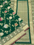 This Banarasi Kadwa silk saree features a gold, silver zari, and meenakari floral jaal pattern that is intricately woven throughout the saree. The self floral border and brocade pallu add to its elegant design, while the bottle-green colour enhances its timeless appeal. The contrasting blouse is plain with a zari border, completing the traditional and opulent look.