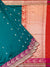 This elegant banarasi silk saree features a beautiful silver zari floral buttis weave throughout, along with a contrasting floral border and brocade pallu. The saree is adorned in a stunning rama-green color, while the blouse is a plain design with border accents.
