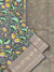 This Chiniya silk saree features a beautiful lotus floral print throughout, accented by a self gold zari floral border and zari stripes on the pallu. The elegant grey colour is complemented by a blouse with self elephant motifs and a zari border.