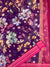 Cotton kota saree features a striking dark-lavender hue, adorned with an elegant floral pattern all over. The saree also showcases a contrasting vidarbha border and a jute pallu. The accompanying blouse displays a self-printed floral design with a matching border.