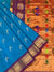 This Gadwal Pattu Saree in blue is adorned with intricate gold and silver zari birds motifs, featuring a self brocade border and a Paithani pallu. The contrasting floral buttis on the blouse are accentuated with zari borders, completing the stunning look.