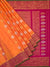 Gadwal pattu saree features a gold and silver zari floral pattern throughout, complemented by a contrast floral border and brocade pallu. The saree is orange in color with a secondary pink hue, and the blouse showcases contrast floral buttis with a border.