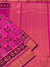 This Kanjeevaram Ikat silk saree features an all-over, intricate geometrical design and a multi-colour floral butta pattern, enhanced with gold zari and animal motifs on the border. The brocade palluu adds an extra touch of elegance. The saree is in a striking Rani-Pink colour, and comes with a self plain blouse adorned with a zari border.