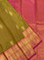 Experience the beauty and elegance of Kanjeevaram Silk Saree in a lovely Mehendi-Green colour. The soft silk weave is adorned with intricate gold zari floral buttis, complemented by a contrasting brocade border and pallu. Complete the look with a plain blouse featuring a zari border.