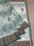 This Sea-Green Maheshwari Cotton Saree showcases an elegant blend of geometrical patterns and floral motifs, It features an thread Brocade zari border and a contrasting jute pallu,The self floral blouse with matching borders.
