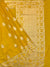 Mashru silk saree features all gold zari floral buttis woven throughout the fabric. The saree also includes a self floral border and a brocade pallu, all in a vibrant mango-yellow color. The blouse is adorned with self stripes for a beautiful finishing touch.
