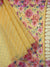 The organza saree in mustard-yellow showcases leheriya embroidery all over the weave, complemented by a self floral printed border and pallu. The blouse, made of self tussore fabric, also features a floral print.