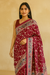 Tussore georgette saree features a stunning weave of silver zari floral design all over, accompanied by a self meenakari floral border and pallu in the shade of rani-pink. The blouse also boasts a self gold zari floral brocade pattern with border, completing the elegant look of this saree.
