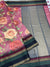 This Dark-Mauve tussore saree features an elegant digital rose floral print across the fabric, paired with a timeless temple border that adds subtle charm. The plain zari pallu enhances its sophisticated look, while the contrasting plain blouse with borders completes the ensemble, making it a graceful choice for any occasion.