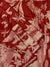 The Tussore Saree in a red color features an intricate weave, showcasing theme motif print and aari-work on the body. The self aari-work scallop border and theme motif pallu add to its elegant design. The accompanying blouse is a simple self pattern with a border, completing the look.