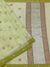 This pista-green Zari Kota Saree highlights intricate silver and gold zari floral buttas, creating an elegant traditional appearance. It is enhanced by a contrasting border adorned with small buttas and a brocade pallu, Paired with a dark lemon-green blouse featuring matching buttas and border, this saree offers a graceful and coordinated look perfect for special celebrations.