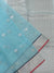 Experience the artistry of a Zari Kota Saree with its delicate weave and exquisite silver zari peacock motif butta, complemented by a self kaddi border and brocade pallu. The light-blue color adds a touch of elegance, while the contrast silver zari polka butta on the blouse, complete with a zari border, adds a perfect finishing touch.