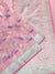 This light-pink Zari Kota saree features a delicate silver zari floral pattern and intricate meenakari weaving, offering a refined elegance. The subtle self-plain kaddi border complements the sophisticated brocade pallu, making it perfect for special occasions. It comes with a matching blouse adorned with buttas and a zari border.