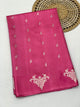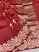 A classic red chanderi silk saree featuring intricate gold and silver zari floral buttis all over. Finished with a self-woven floral border and pallu. Includes a matching red blouse piece with a textured striped weave.