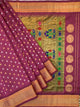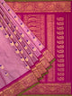Gadwal pattu saree features a stunning gold zari floral and kairi buttis woven throughout, along with a contrasting brocade border and pallu in the color green. The secondary color is blue, and the blouse is plain with a matching border.