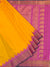 Gadwal pattu saree mango-yellow features an intricate weave of gold zari leaf and kiari buttis, along with a contrasting brocade border and pallu. The blouse is plain with a border, creating a stunning and elegant look.