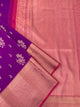 This gorgeous Kanjeevaram silk saree features a stunning gold zari floral brocade pattern woven throughout. The saree is complimented by a contrasting peacock motif border and brocade pallu, all in a beautiful bottle-green colour. The blouse is a perfect contrast, with a plain design and zari border. Experience the elegance and tradition of this saree.