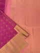 This Kanjeevaram Silk Saree features an all-over weave of gold and silver zari floral and peacock motifs, complemented by silver zari stripes on a mango-yellow background. The saree is finished with a contrast brocade border and pallu, while the matching blouse showcases beautiful floral buttis with a zari border.