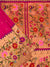 This pink Paithani Silk Saree showcases hand-woven artistry with a stunning gold zari polka buttas design on the entire body. It features a large multi-color floral border with gold zari accents, and is complemented with a matching self pallu. The saree comes with a self plain blouse with border included.
