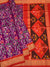 Celebrate the timeless heritage of Indian handlooms with this breathtaking Handwoven Ikat Silk Saree. Featuring a rich interplay of royal purple and fiery crimson, this saree is a masterpiece of the "tie-and-dye" weaving technique, where the yarn is dyed before hitting the loom to create its signature blurred patterns.
