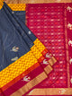 The peach patola saree features an intricate weave of geometrical patterns all over its body, complemented by a contrast floral and stripes border and a floral pallu. The blouse is plain and contrasted with stripes border.