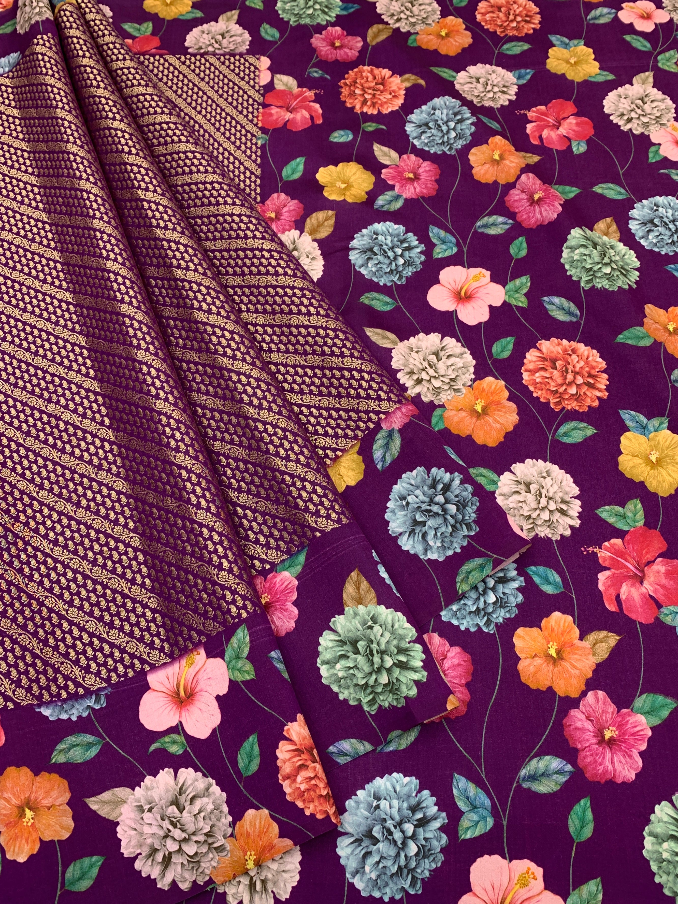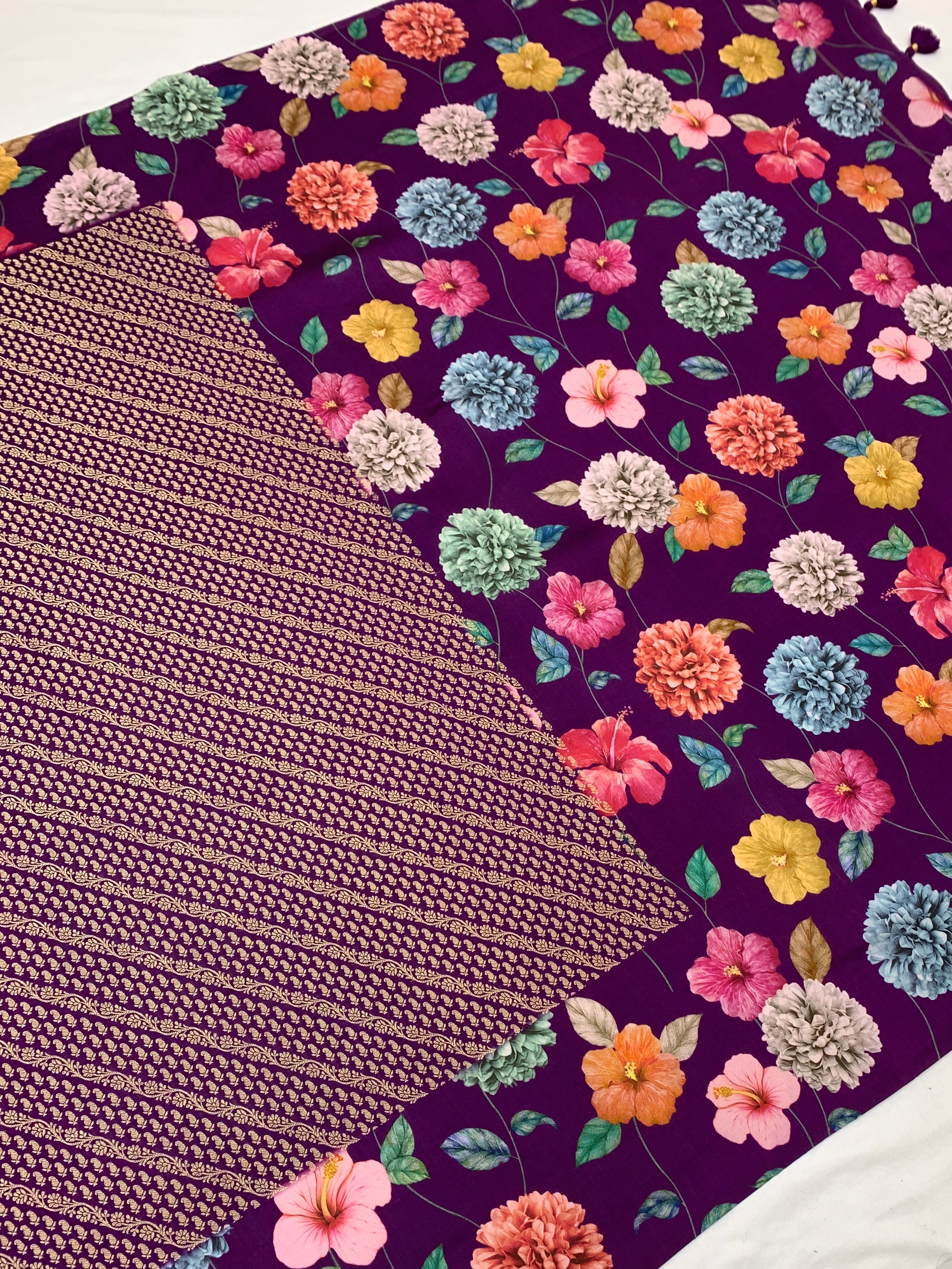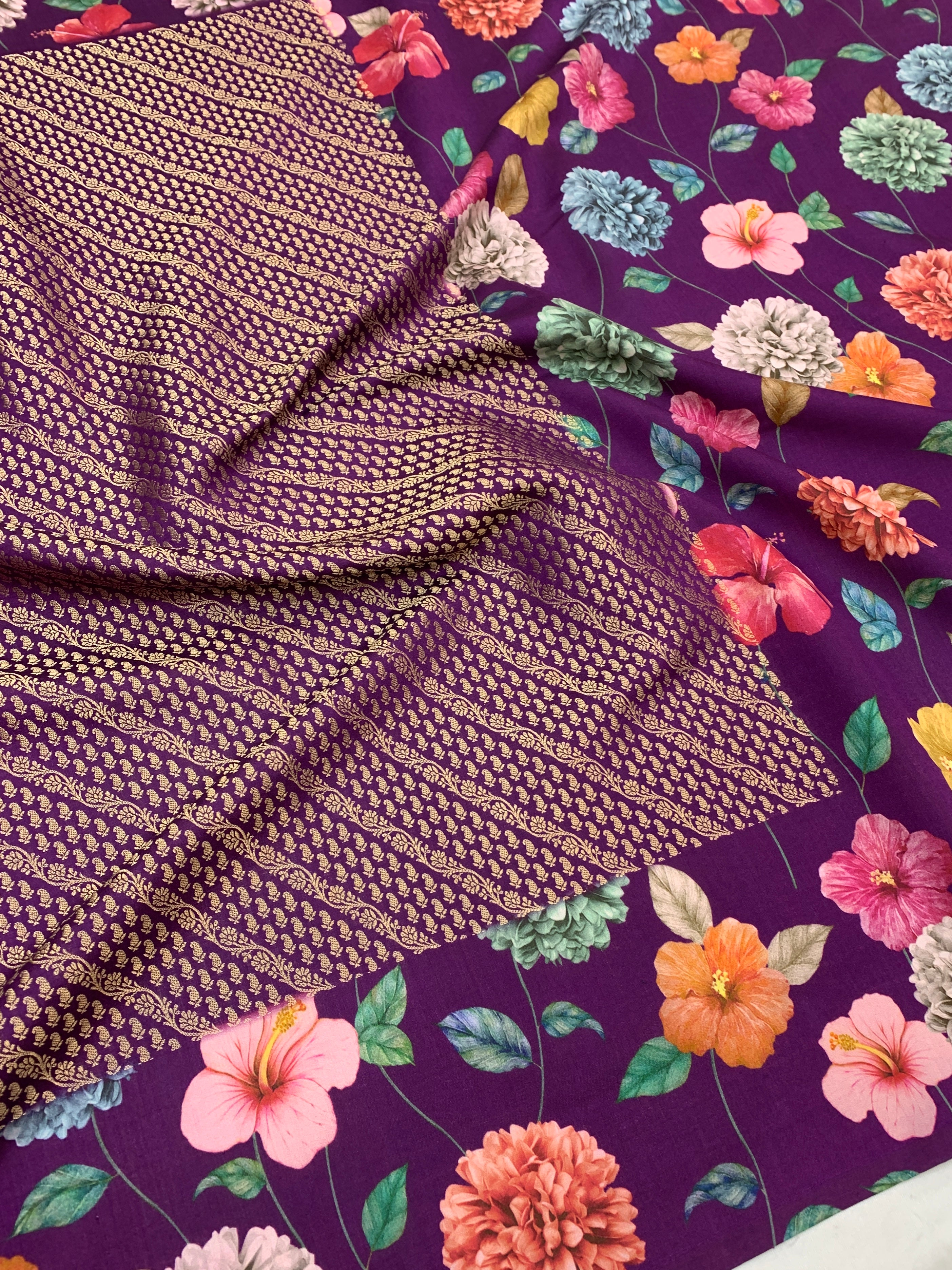 My Choice Sarees I Purple Brocade Silk Saree With Floral Border website
