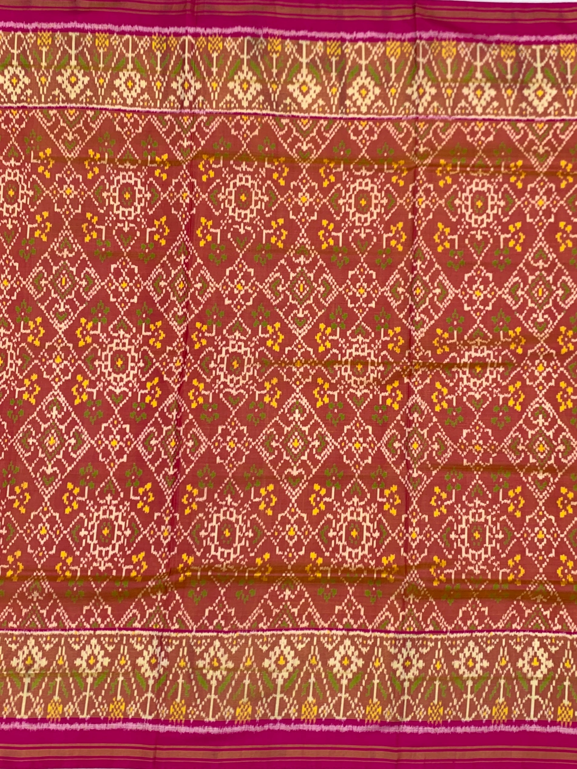 Elevate your ethnic wardrobe with the timeless artistry of this Rajkot Patola Silk Saree. Renowned for its precision and vibrant geometric storytelling, this piece is a masterpiece of the single-ikat weaving tradition, making it a sophisticated choice for weddings, festivals, and high-profile celebrations.