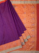 This elegant saree features a soft silk fabric with intricate weaving of gold and silver zari geometric buttis. The border is adorned with self gold zari kaddi, while the pallu showcases a beautiful floral design. The saree is in anandha-blue color, accompanied by a self plain raw-silk blouse with matching border.