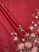 Tussore saree featuring a multi-colour floral jaal embroidery pattern on the body, accented with self gota patti and aari-work scallop border and pallu. The colour is black and the blouse has a plain design with border.