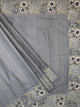 The tussore saree grey In colour features intricate embroidery and thread weave throughout, with delicate sequence work buttis adorning the fabric. The saree is finished with a self thread weave border and pallu, all in a stunning shade of grey. The accompanying blouse also boasts a self thread weave design.