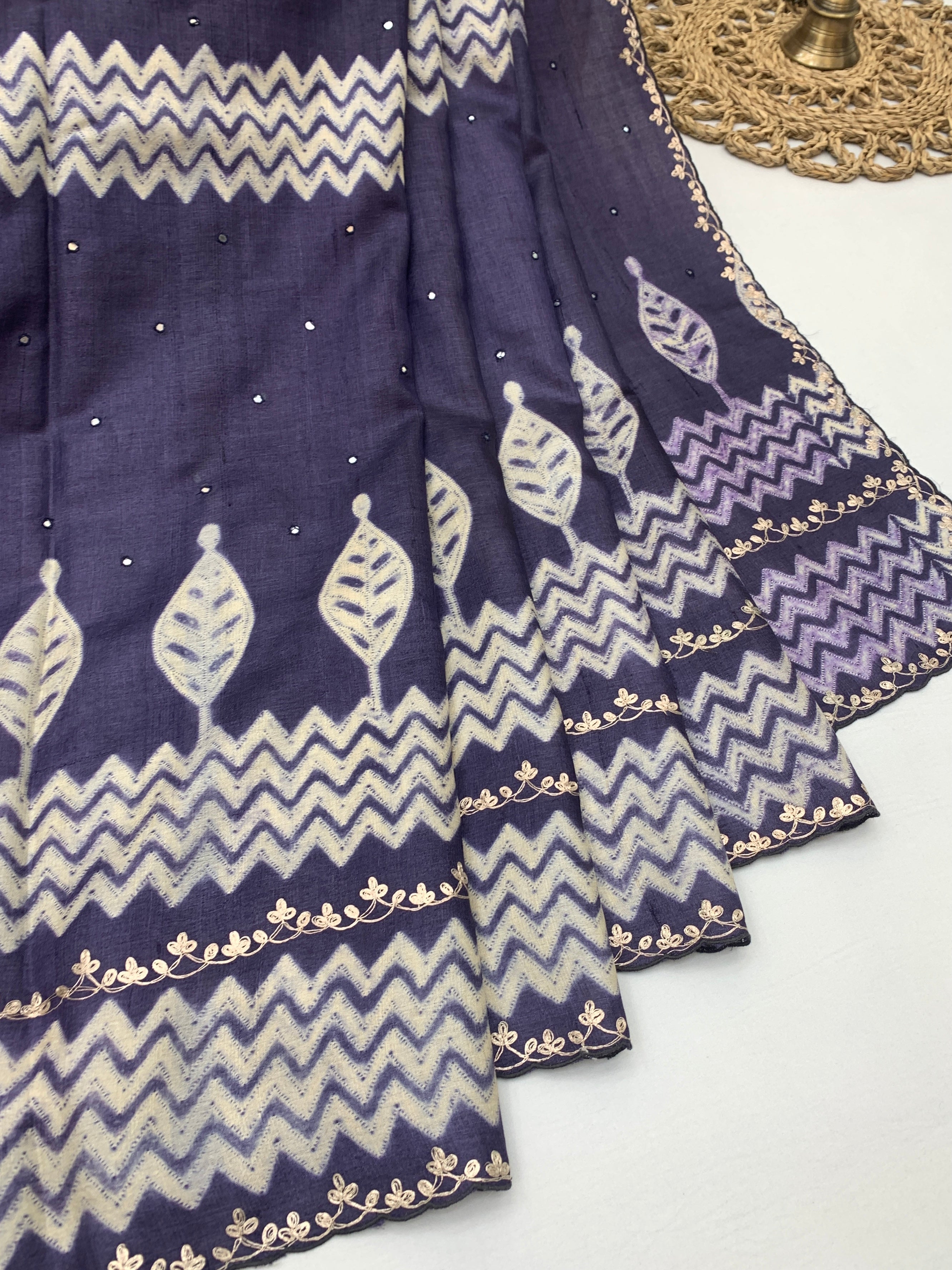 Fabric: Pure, breathable Tussar silk that offers a structured yet comfortable drape, perfect for all-day wear.