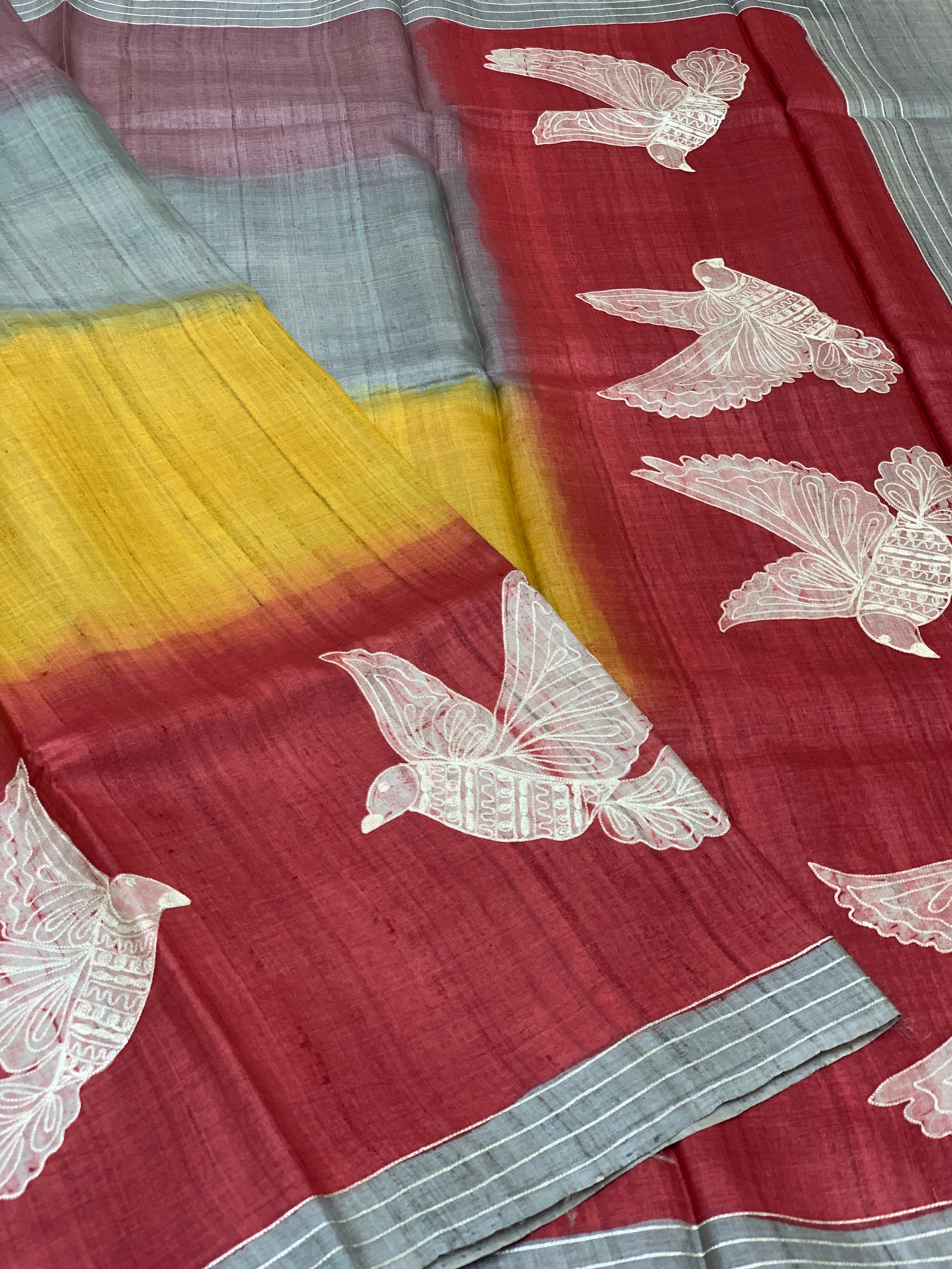 Fabric: Pure Tussar Silk (lightweight and breathable with a natural texture).