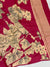 This charming pink tussore saree drapes beautifully with an all-over floral print. The contrasting striped pallu adds dimension and elegance, while the coordinating plain blouse offers effortless styling.