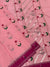 Blouse: Includes an unstitched, matching magenta pink blouse piece with all-over silver zari buttis and coordinating border.