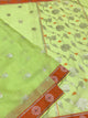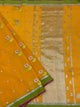 This yellow Zari Kota Saree beautifully showcases intricate silver and gold zari floral buttas across its fabric, offering a graceful traditional look. It features a self silver zari single muniya border that adds subtle elegance, while the rich floral Jaal pallu enhances its classic charm. Complemented by a contrasting red blouse adorned with matching buttas.2200
