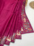 This vibrant magenta pink tussore saree features delicate mirror-work buttis scattered across the body, catching the light with every movement. The borders and pallu are intricately adorned with tonal self-embroidery, showcasing a graceful symphony of floral vines, majestic cranes, and peacock motifs. Complete with a matching self-textured blouse piece.